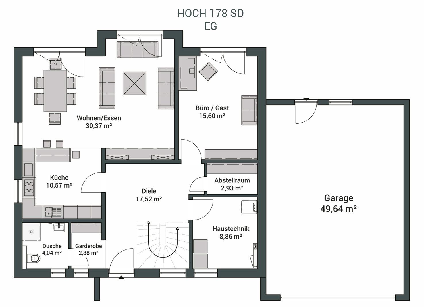 Viel Platz für die ganze Familie, durchdachte Grundrisse und moderne Architektur machen das HOCH Massivhaus 178 SD zu einem unserer beliebtesten Entwürfe.