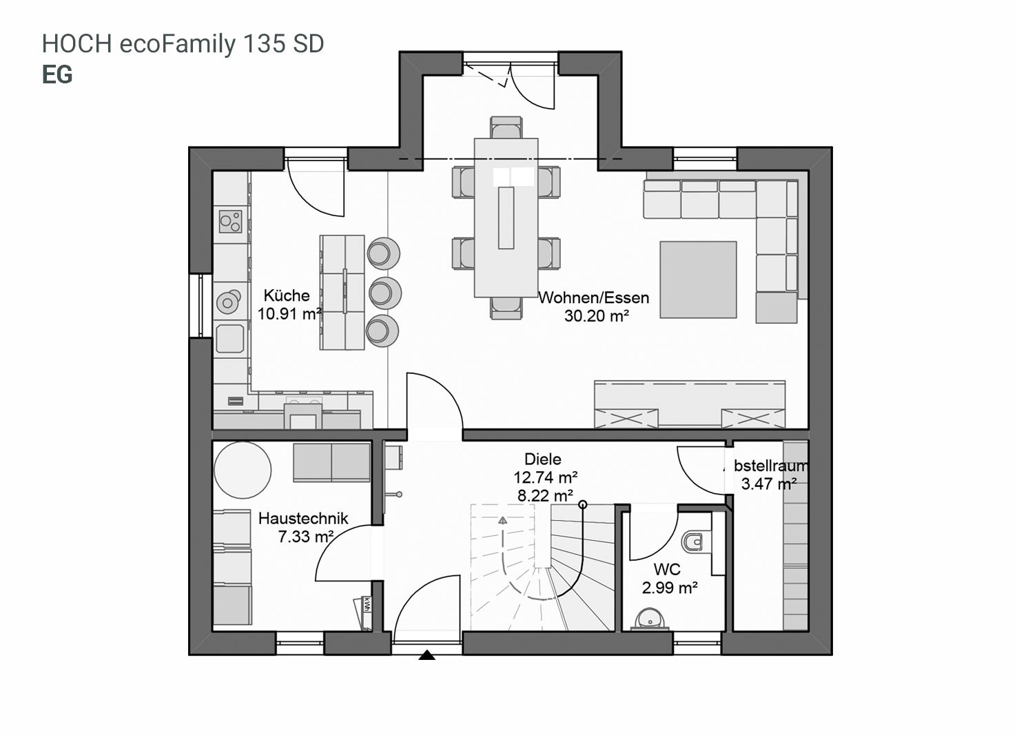 Für Sie versetzen wir Wände! Lieber ein offener Koch-Essbereich oder doch lieber eine größere Küche und separates Esszimmer? Wir planen Ihren Grundriss individuell und ganz nach Ihren Wünschen. Ohne zusätzliche Kosten!
