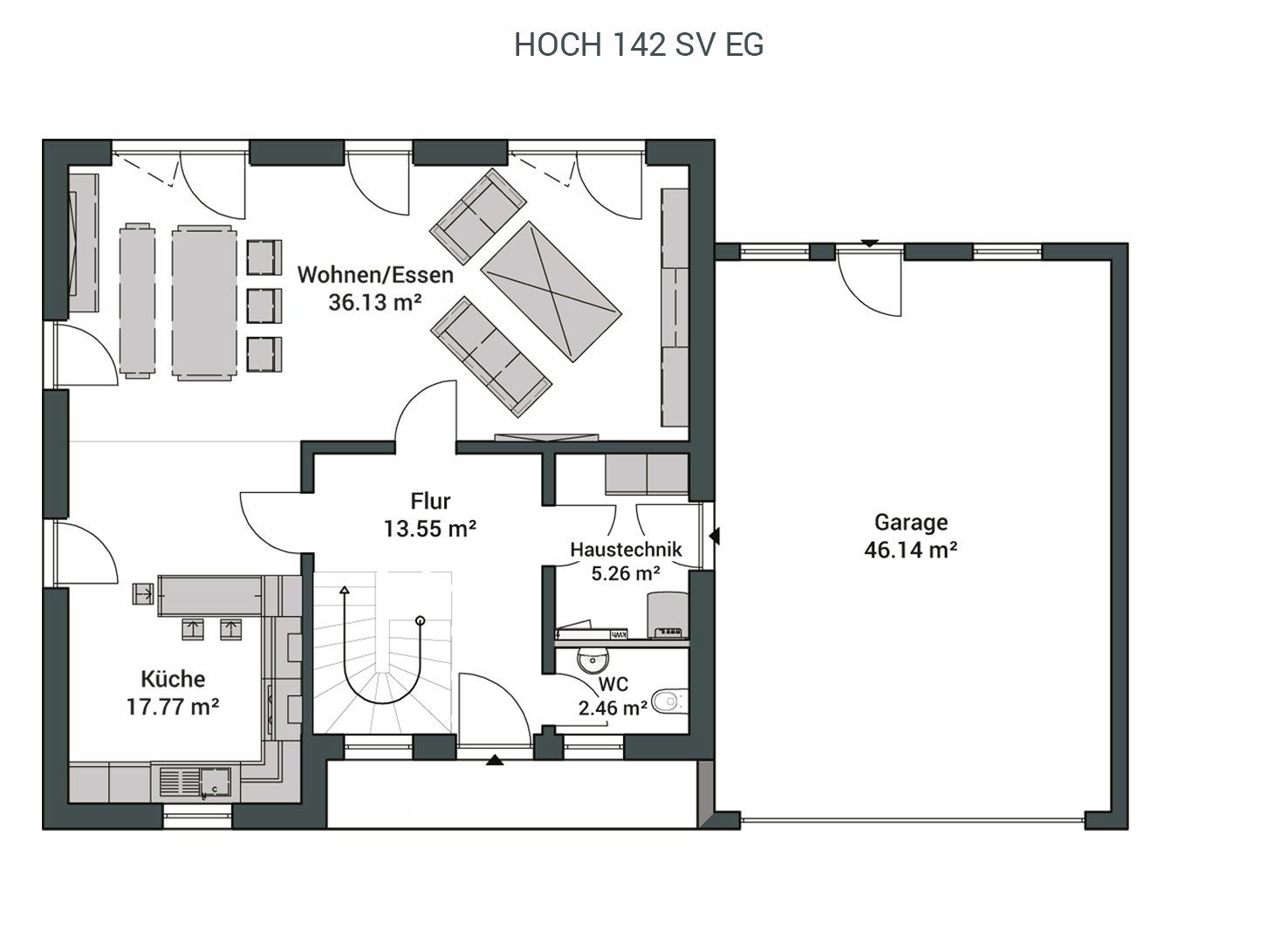 Viel Platz für die ganze Familie, durchdachte Grundrisse und moderne Architektur machen das HOCH Massivhaus 142 Stadtvilla, besonders für Familien, zu einem beliebten Entwurf. Die moderne Architektur verleiht dem großzügigen Eigenheim eine besonders attraktive Ansicht und bietet viel Platz für die Verwirklichung all Ihre Wohnwünsche. Eine Traumvilla in massiver Bauweise. Das passt.